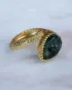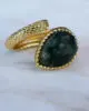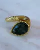 Χειροποίητο δαχτυλίδι με εντυπωσιακή μαύρη πέτρα σε δάκρυ σχήμα και χρυσή μεταλλική βάση με ανάγλυφες λεπτομέρειες. Ρυθμιζόμενο για άνετη εφαρμογή, είναι statement κόσμημα που προσθέτει μυστήριο και κομψότητα σε κάθε σας εμφάνιση.