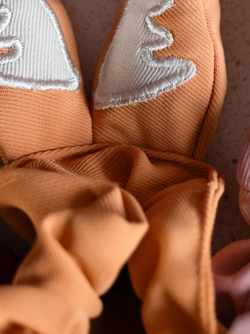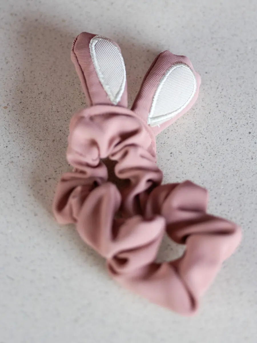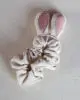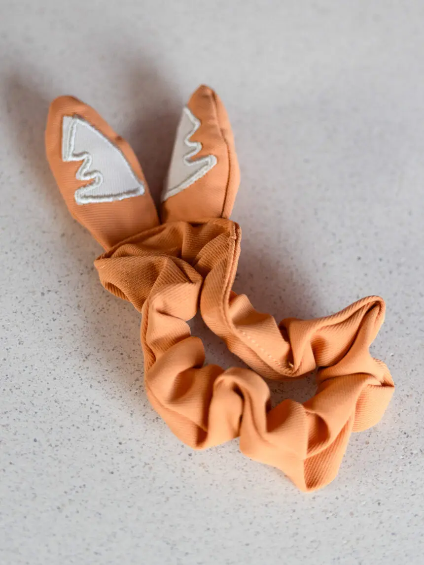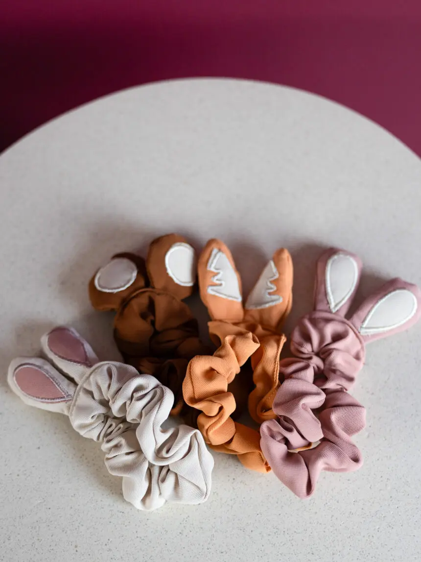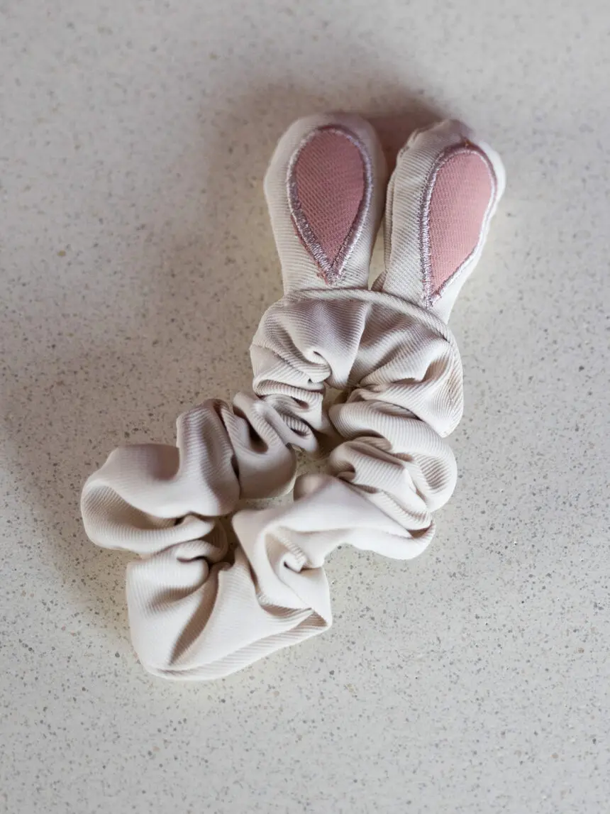 Λαστιχάκι μαλλιών scrunchie με διακοσμητικά αυτιά κουνελιού. Απαλό ύφασμα σε γήινες και παστέλ αποχρώσεις, ιδανικό για καθημερινές εμφανίσεις αλλά και για παιχνιδιάρικα outfits. Σταθερό κράτημα χωρίς να ταλαιπωρεί τα μαλλιά.