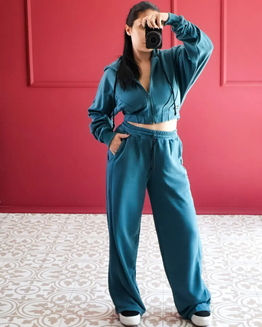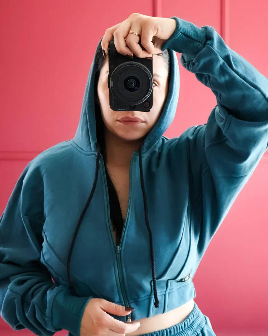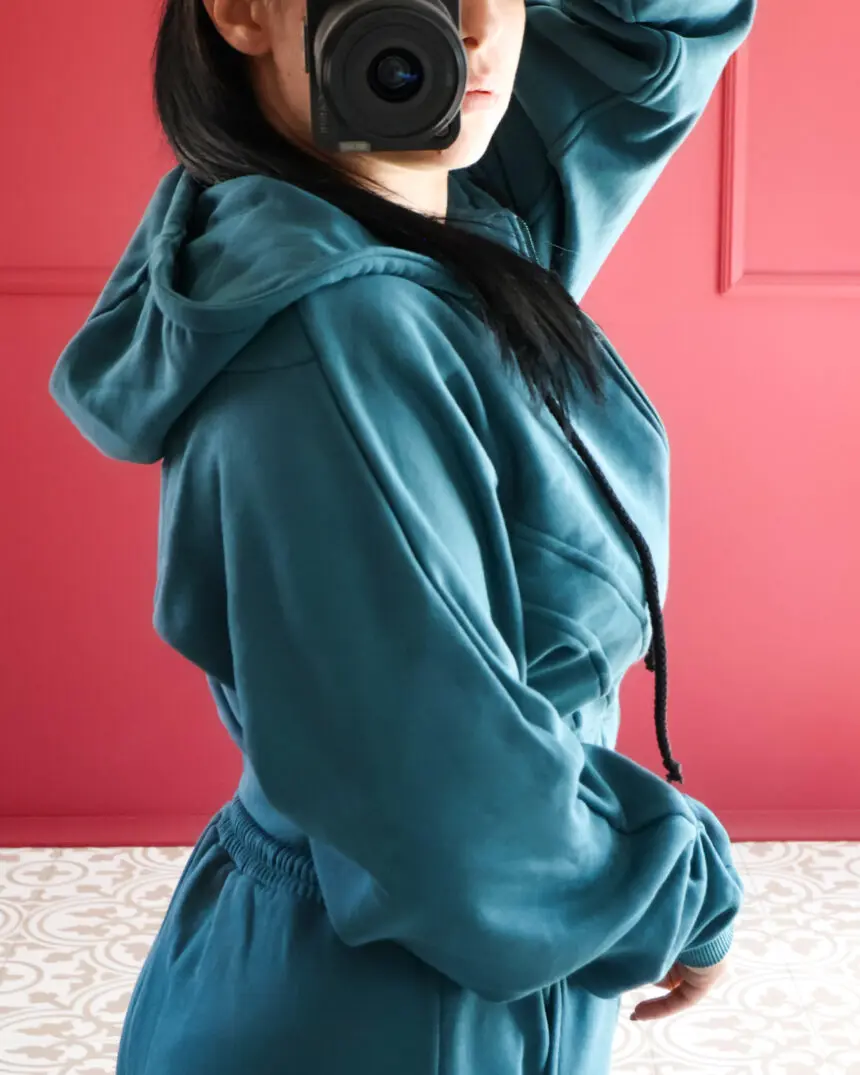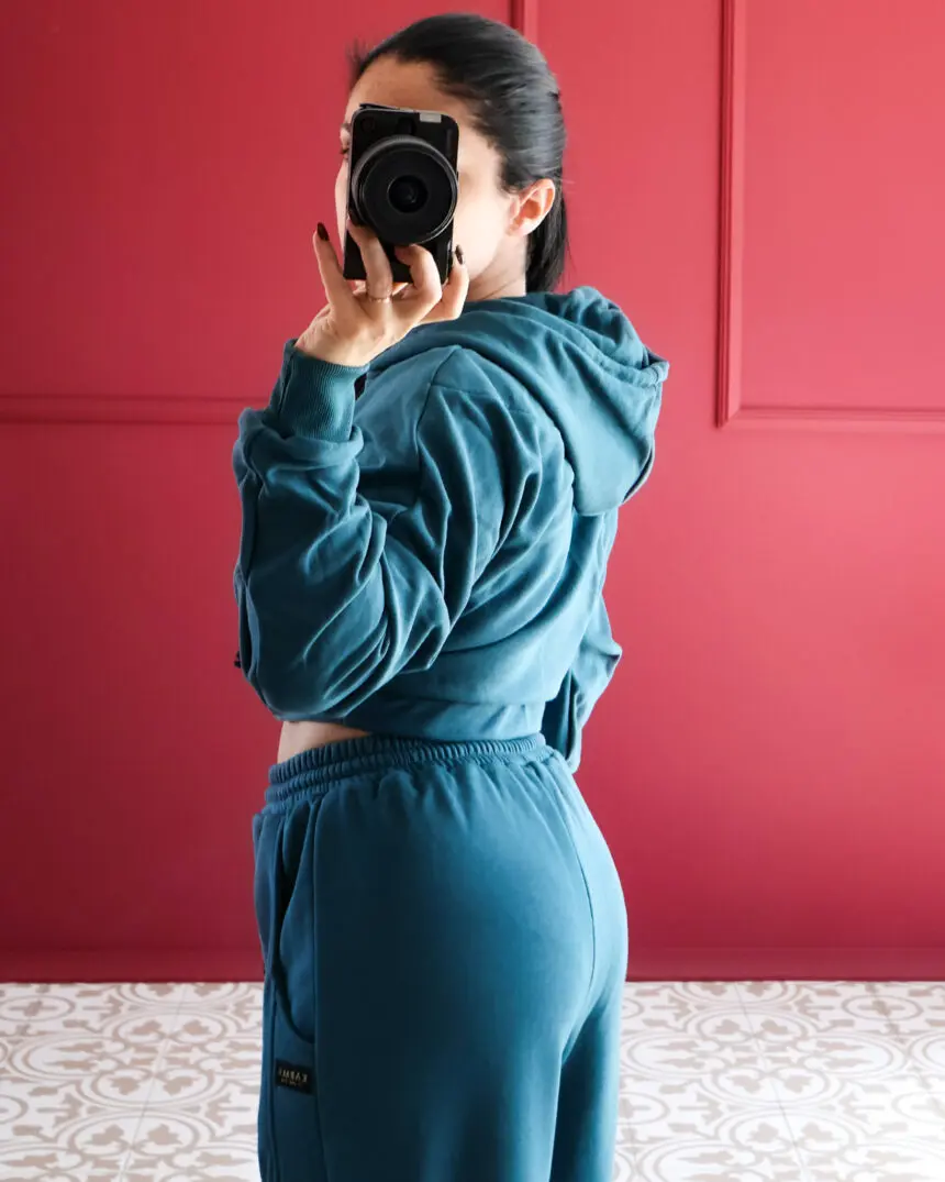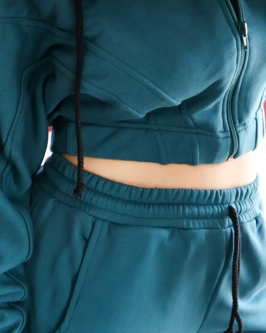 Cropped ζακέτα με κουκούλα και φερμουάρ, σε μοντέρνα γραμμή που αναδεικνύει τη μέση. Διαθέτει κορδόνι στην κουκούλα και μακριά μανίκια για cozy αλλά ταυτόχρονα stylish αποτέλεσμα. Ιδανική επιλογή για sporty chic εμφανίσεις, αλλά και για άνετο streetwear look με τζιν ή φόρμα.