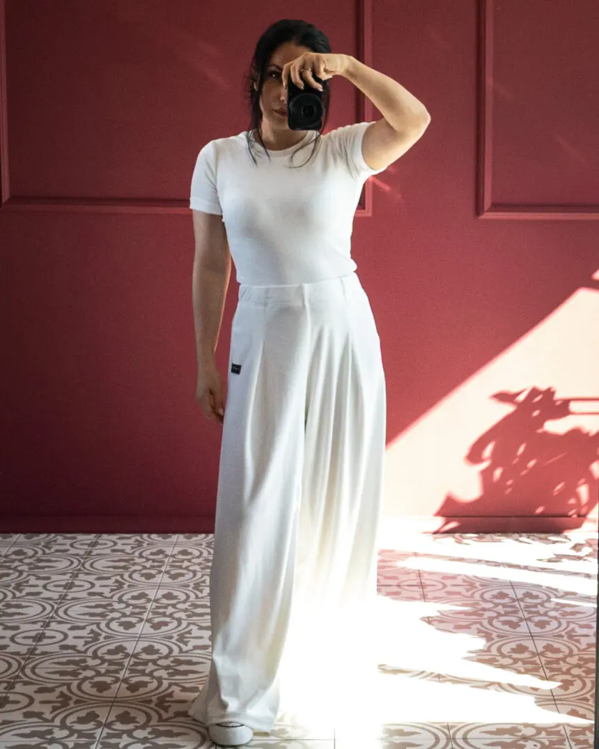 High-waisted wide-leg pants made from lightweight flowy fabric. Designed to elongate the figure while ensuring comfort and effortless movement.