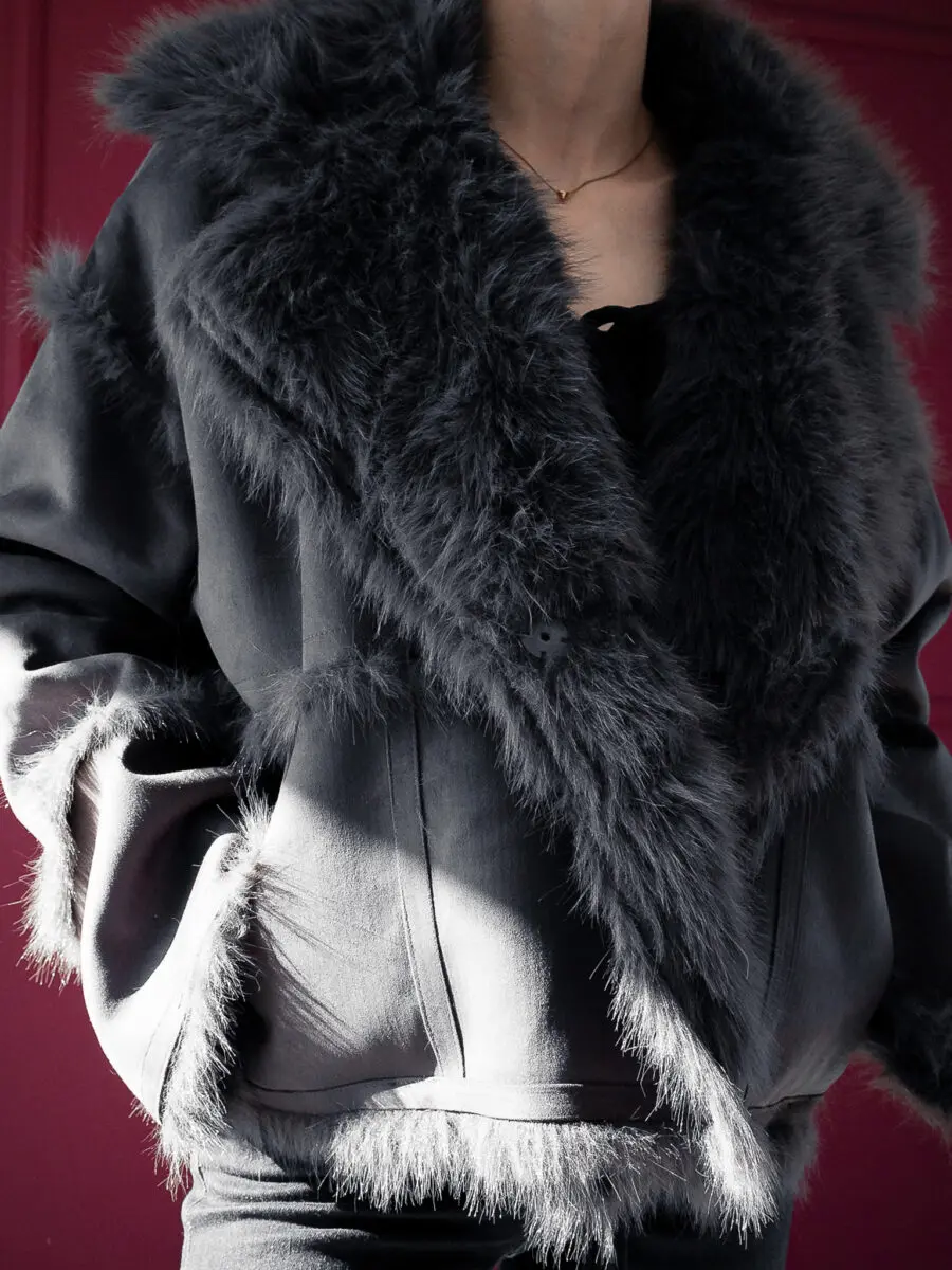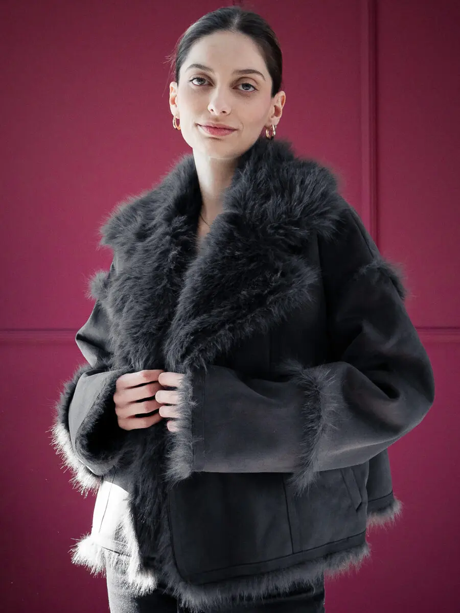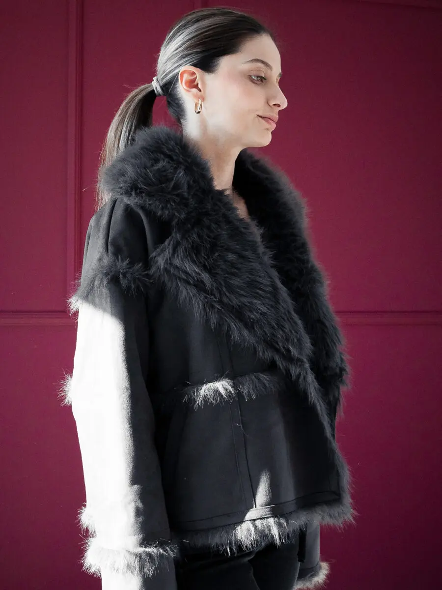 jacket τύπου shearling με εντυπωσιακή επένδυση και τελειώματα από απαλή γούνα που προσφέρουν ζεστασιά και πολυτελή αίσθηση.