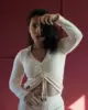 Απαλή μπλούζα με μακριά μανίκια από ελαφρύ πετσετέ ύφασμα (terry towelling). Διαθέτει V λαιμόκοψη και ρυθμιζόμενη σούρα με κορδόνι στο μπροστινό μέρος για κολακευτική εφαρμογή. Συνδυάζει άνεση και κομψότητα — ιδανική για χαλάρωση, ταξίδια ή resort εμφανίσεις. Κατασκευάζεται στην Ελλάδα.