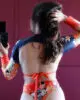 Το “Sunset Surf” είναι ένα εντυπωσιακό ολόσωμο μαγιό με μακριά μανίκια και εντυπωσιακή ανοιχτή πλάτη, σχεδιασμένο για γυναίκες που θέλουν κάτι ξεχωριστό στην παραλία. Με ζωντανό floral print σε τόνους μπλε και πορτοκαλί, προσφέρει πλήρη προστασία από τον ήλιο στα χέρια και παράλληλα sexy άνοιγμα στην πλάτη με δέσιμο στο πίσω μέρος.